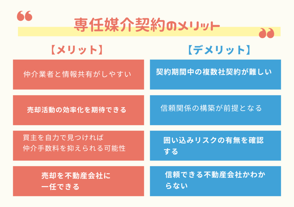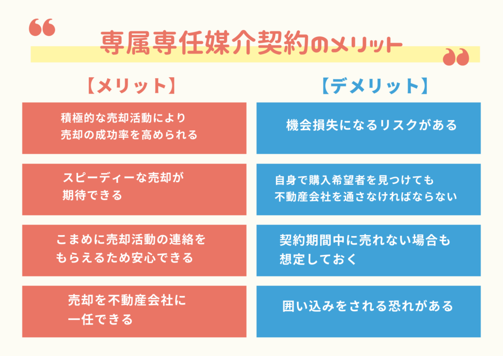 ただし、契約期間中は他の不動産会社との重複契約が難しいため、どの会社を選ぶか慎重に検討する必要があるでしょう。